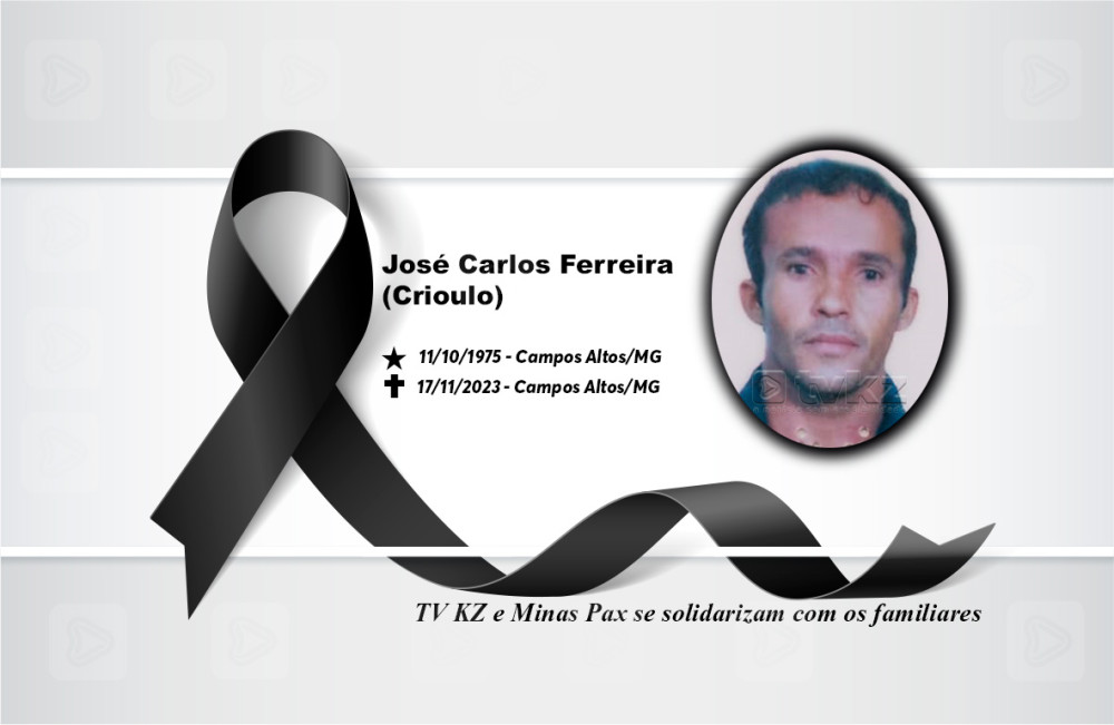 É com pesar que Getúlio Florentino Ferreira comunica o falecimento de seu filho, José Carlos Ferreira, conhecido por Crioulo, aos 48 anos, ocorrido nesta sexta-feira, 17 de novembro de 2023, em Campos Altos/MG. O corpo de José Carlos está sendo velado no velório Minas Pax II, ao lado da Vila Vicentina, Bairro Camposaltinho. O sepultamento será hoje às 16h30 no cemitério municipal. A família, enlutada, agradece o apoio e solidariedade.