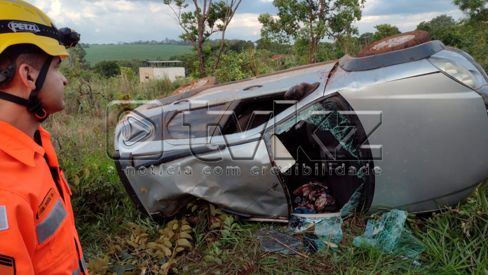 Caminhonete é abandonada após bater e derrubar poste de iluminação, em Araxá/MG