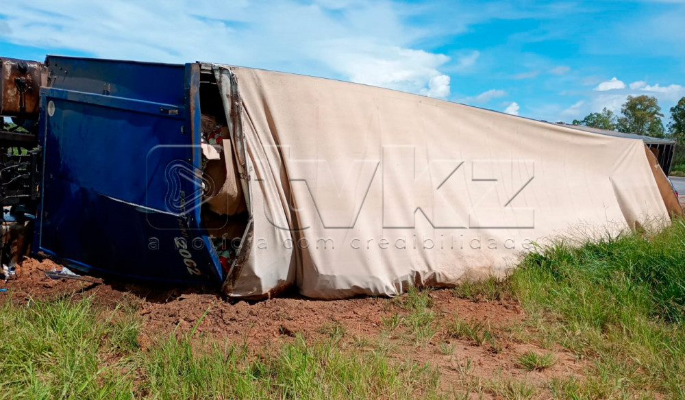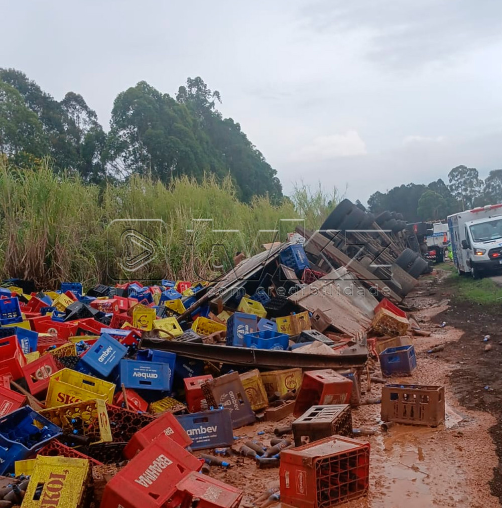 VÍDEO: Carreta com cerveja tomba e fecha BR-262 entre Córrego Danta/MG e Campos Altos/MG