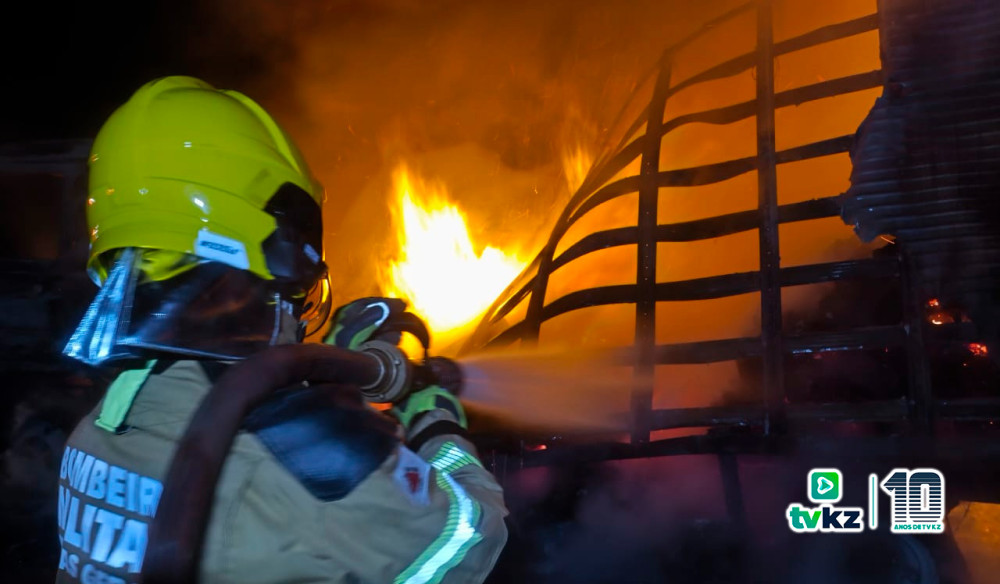 Caminhão pega fogo na BR-262 entre Córrego Danta/MG e Campos Altos/MG