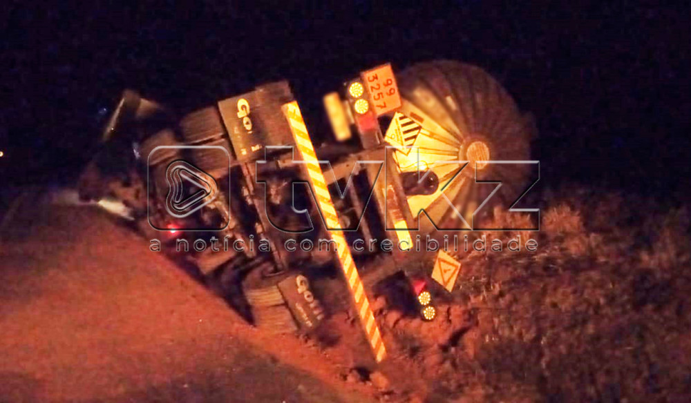 Carreta tomba e interdita faixa da BR-262, em Córrego Danta/MG