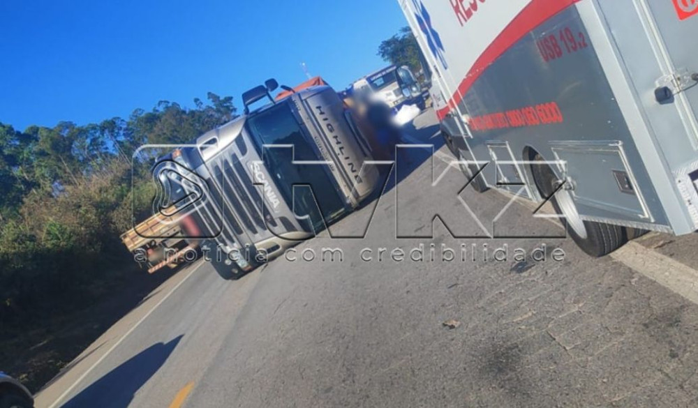 Caminhão tomba na BR-262, entre Córrego Danta/MG e Campos Altos/MG
