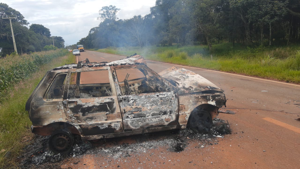 Após acidente, homem ameaça envolvidos com arma e coloca fogo em veículo