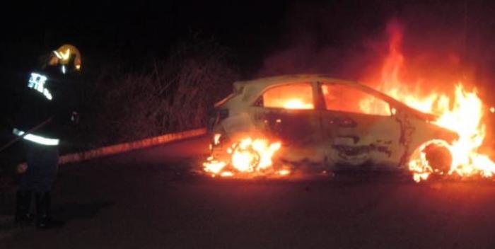 Possível carro roubado em BH é abandonado e incendiado em Patos de Minas