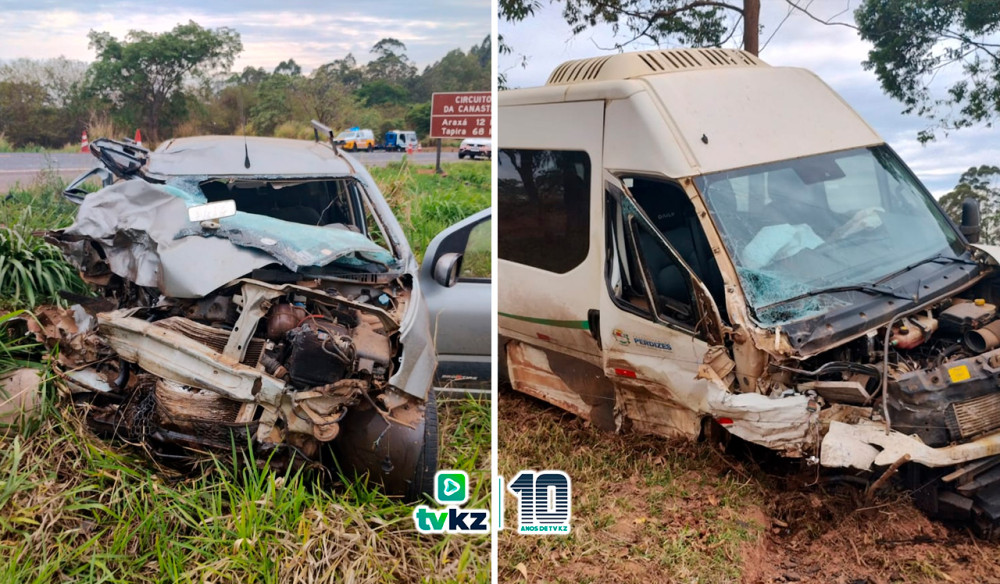 Motorista fica em estado grave após batida na MGC-452 entre carro e micro-ônibus escolar da Prefeitura de Perdizes/MG