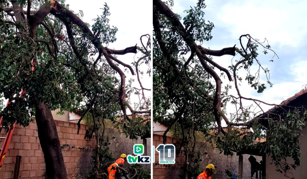 Parte de árvore de 18 metros cai sobre casa em Sacramento/MG