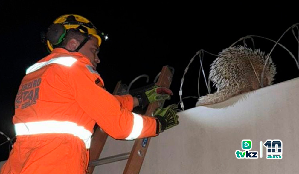 Ouriço-caixeiro preso em concertina é resgatado pelos bombeiros em São Gotardo/MG