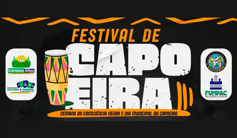 ASSISTA: Semana da Consciência Negra terá Festival de Capoeira com atividades culturais, shows e Tardezinha, em Campos Altos/MG
