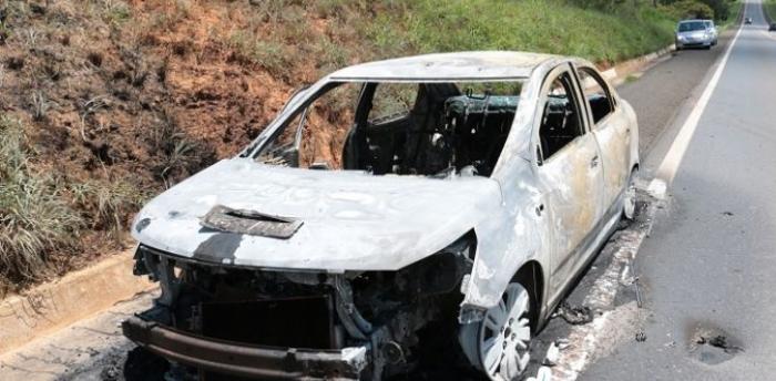 Carro pega fogo após pane na BR-354, próximo a Bambuí