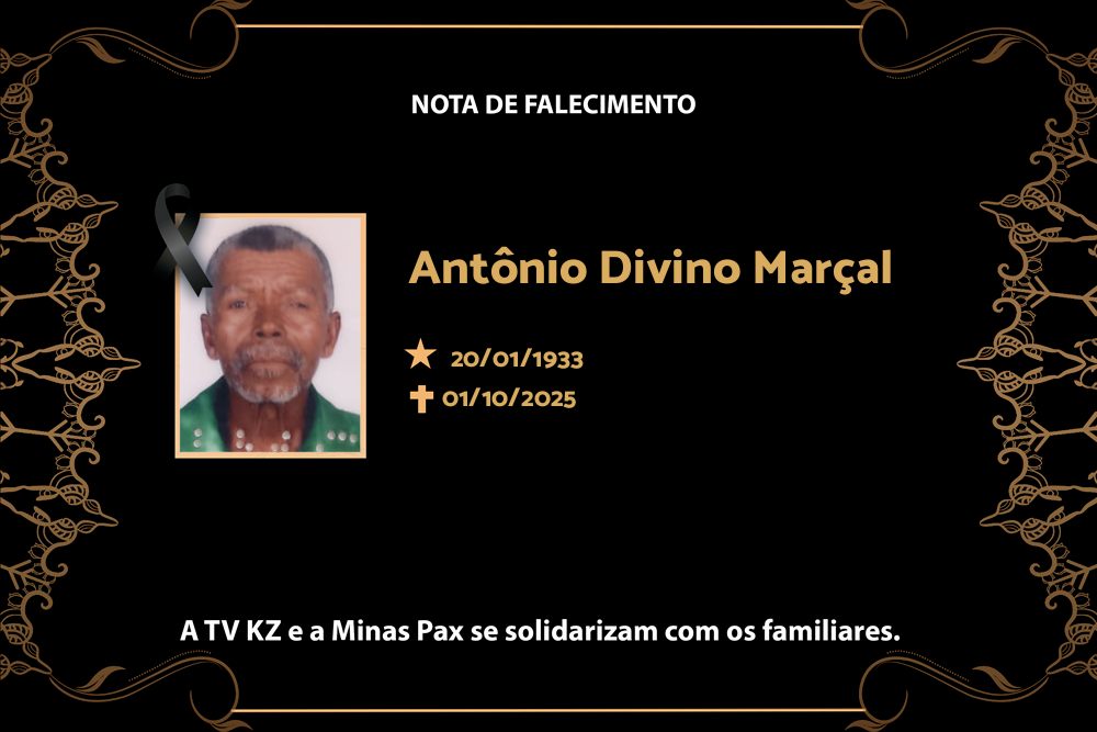 É com pesar que a Vila Vicentina comunica o falecimento de Antônio Divino Marçal, aos 92 anos, ocorrido nesta quarta-feira, 1° de outubro de 2025, em Campos Altos/MG.