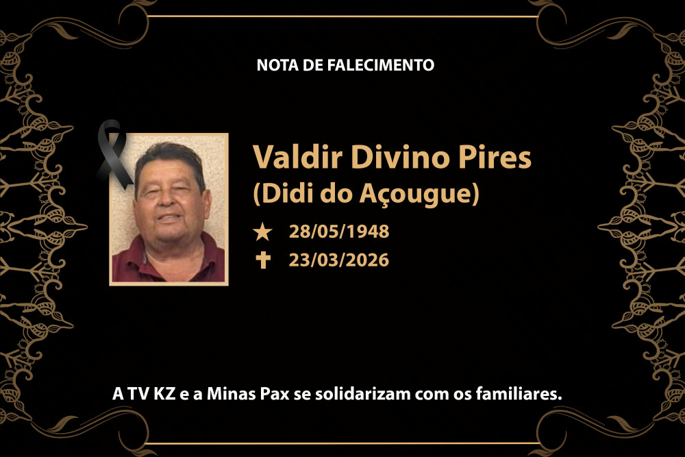 É com pesar que a família comunica o falecimento de Valdir Divino Pires (Didi do Açougue), aos 77 anos, ocorrido nesta segunda-feira, 23 de março de 2026, em Campos Altos/MG.