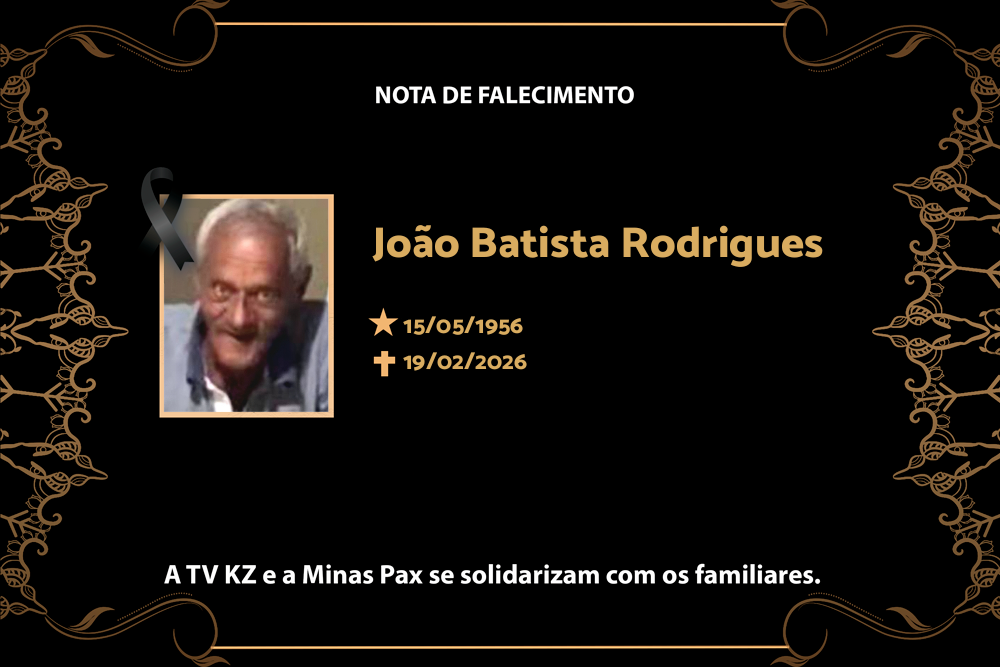 É com pesar que Laura, Márcio e demais irmãos comunicam o falecimento de João Batista Rodrigues, aos 69 anos, ocorrido nesta quinta-feira, 19 de fevereiro de 2026, em Campos Altos/MG.
