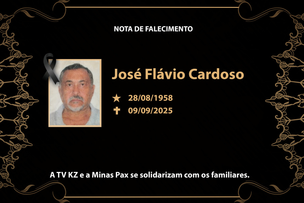 É com pesar que Paula e Patrick comunicam o falecimento de seu pai, José Flávio Cardoso, aos 67 anos, ocorrido nesta terça-feira, 9 de setembro de 2025, em Rio Paranaíba/MG.
