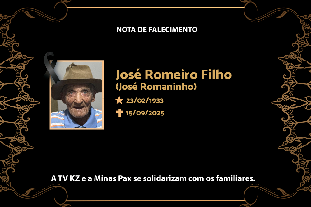 É com pesar que Sueli, José Wanderley, Célia e João Wandelci comunicam o falecimento de seu pai, José Romeiro Filho, aos 92 anos, conhecido como José Romaninho, ocorrido nesta segunda-feira (15), em Campos Altos/MG.