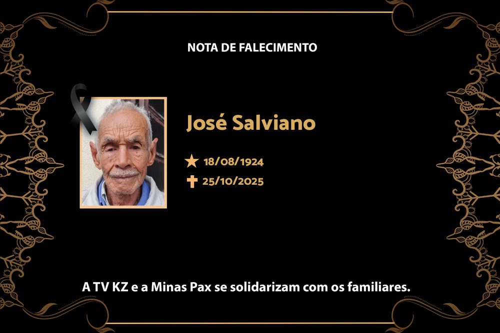 É com pesar que José Antônio Pedreiro (filho) e família comunicam o falecimento de José Salviano, aos 101 anos, ocorrido neste sábado, 25 de outubro de 2025, em Campos Altos/MG.