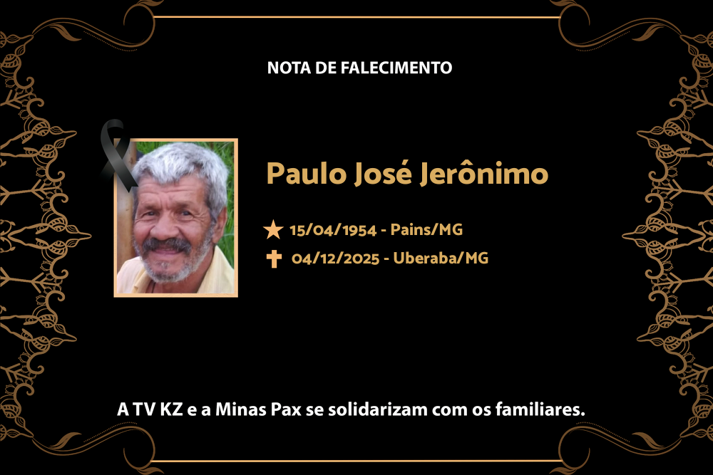 É com pesar que Tianinha comunica o falecimento de seu marido, Paulo José Jerônimo, aos 71 anos, ocorrido nesta quinta-feira, 4 de dezembro de 2025, em Uberaba/MG.