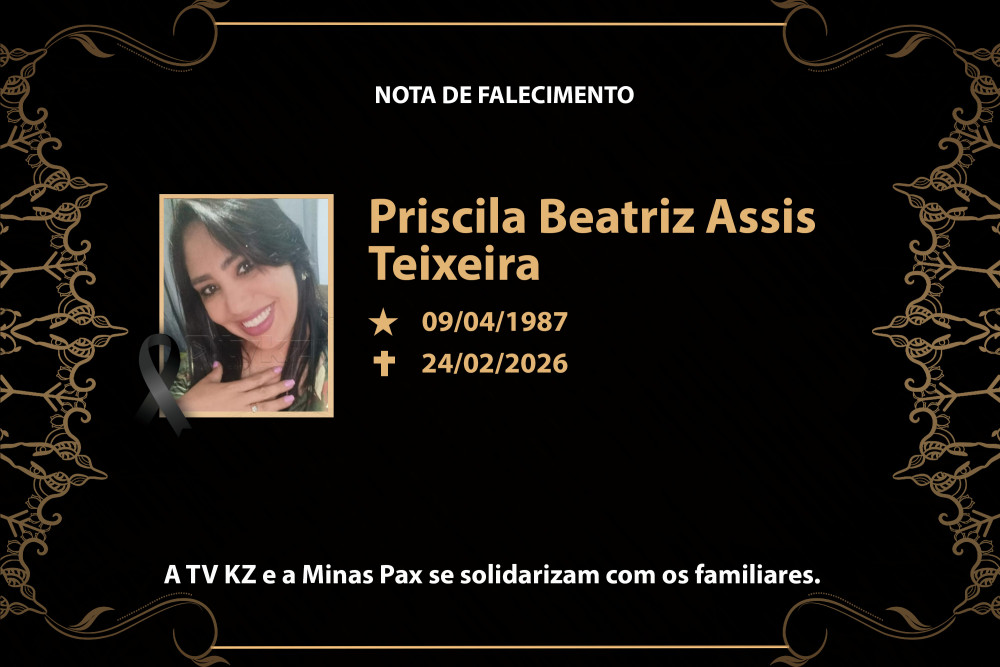 É com pesar que Diego e família comunicam o falecimento de sua irmã, Priscila Beatriz Assis Teixeira, aos 38 anos, ocorrido nesta terça-feira, 24 de fevereiro de 2026, em Campos Altos/MG.