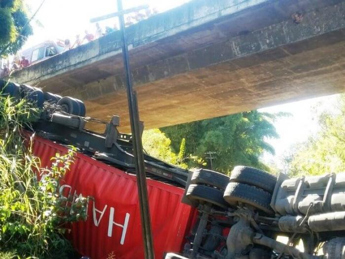 O motorista do caminhão foi socorrido pelo Corpo de Bombeiros e levado para o Pronto Atendimento Municipal (PAM) com suspeitas de fratura no ombro, em uma das pernas e com traumatismo craniano leve.