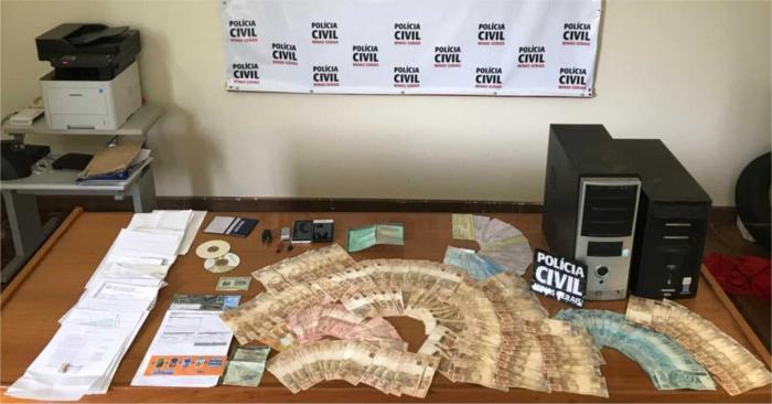Foram apreendidos cerca de R$13 mil em dinheiro, computadores, uma caminhonete e vários documentos com indícios de falsificação.