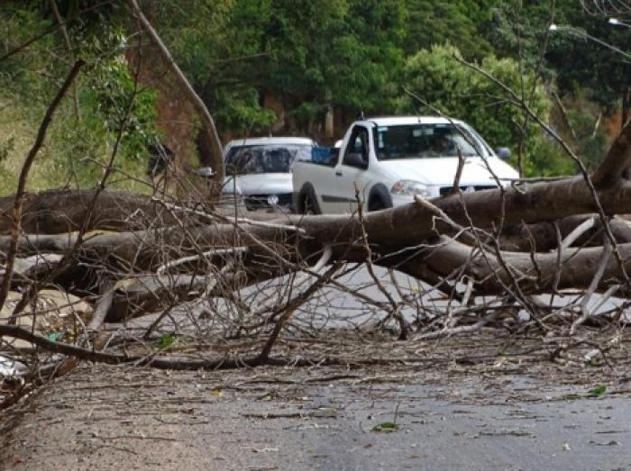 Ainda segundo os Bombeiros, uma queimada que atingiu a região durante o dia deixou a estrutura dos eucaliptos fracas e com a chuva as árvores caíram. O trabalho de corte e retirada foi feito e o tráfego no local está normalizado.