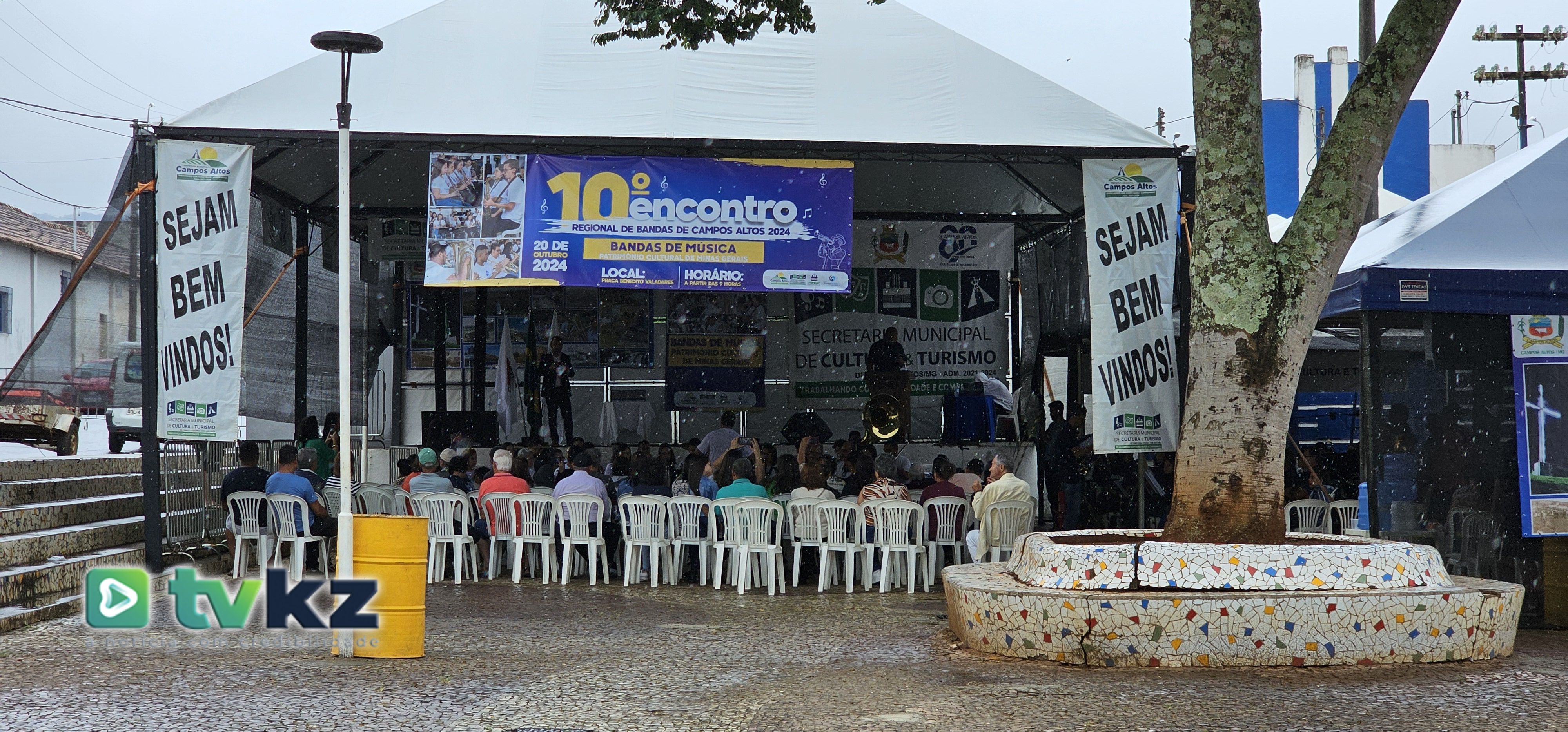 Campos Altos/MG recebeu nesse domingo, 20 de outubro de 2024, a 10ª edição do Encontro Regional de Bandas. O evento contou com a participação da Lira Santo Antônio de Campos Altos/MG, Lyra Vicentina Aterradense de Luz/MG e a Lira Musical São Sebastião de Nova Serrana/MG. O encontro ocorrey na Praça Benedito Valadares no Centro da cidade.