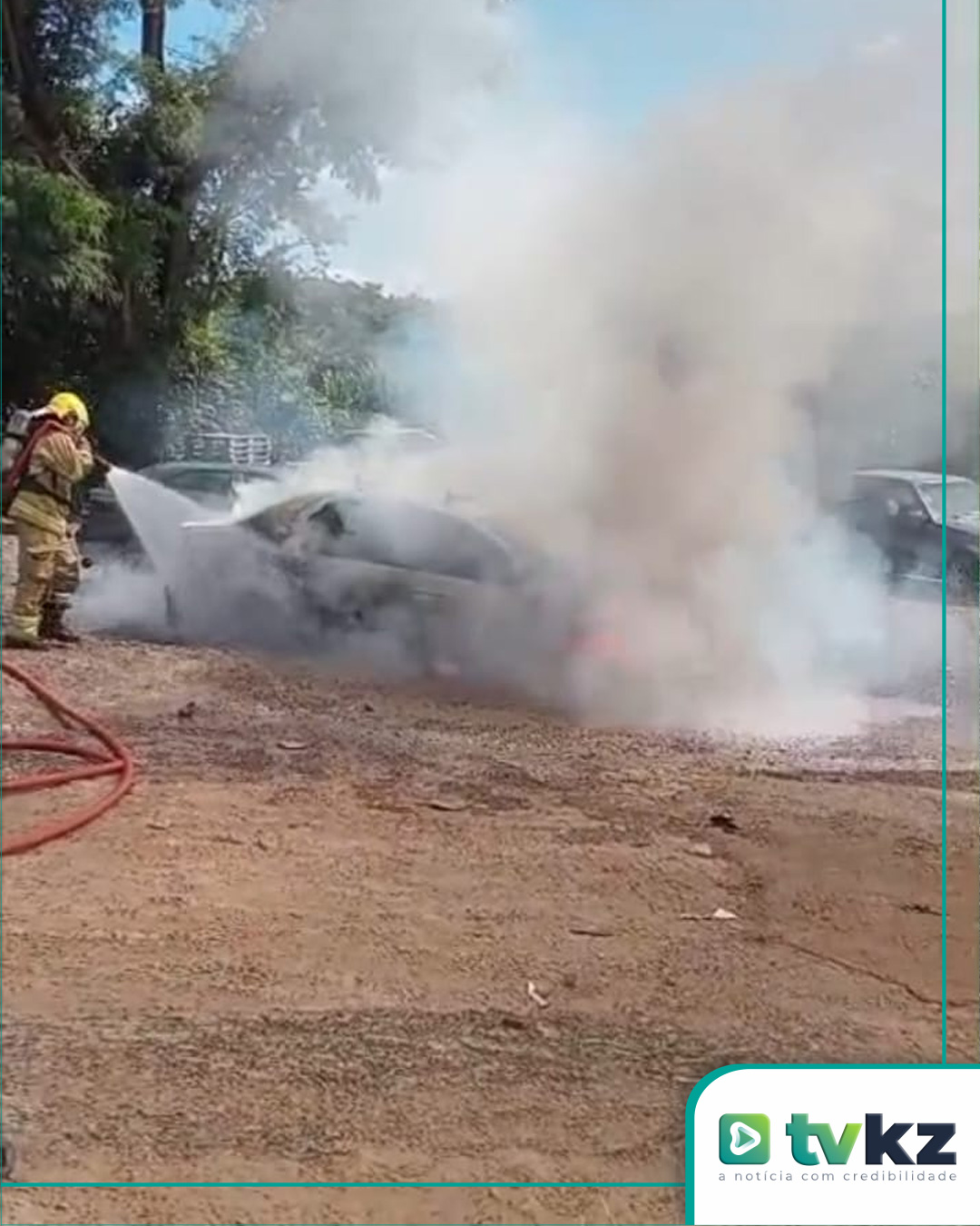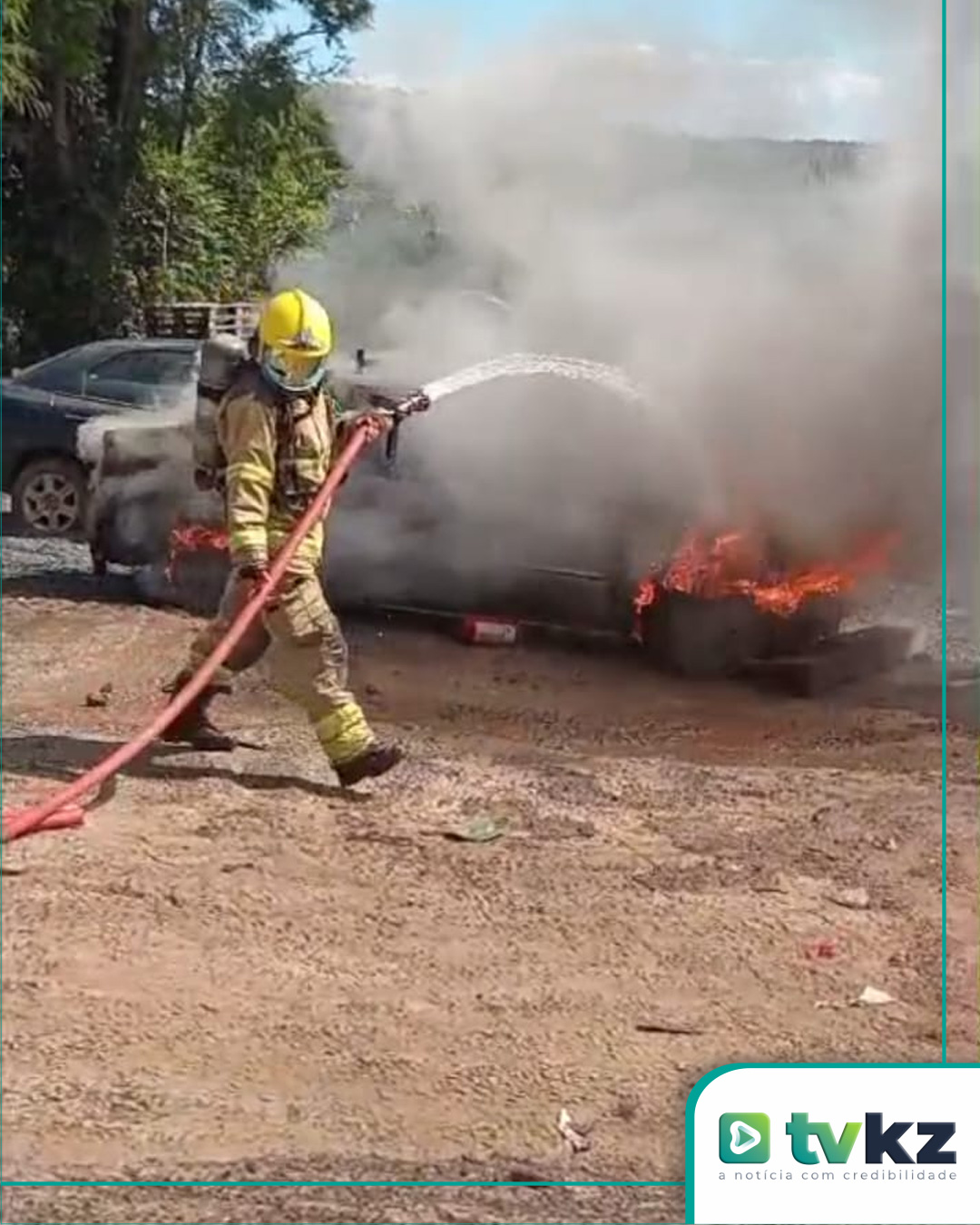 O Corpo de Bombeiros Militar alerta que, em situações de incêndio em veículos, a orientação é manter distância segura e acionar imediatamente a corporação pelo telefone 193. Tentativas de combate sem equipamentos adequados podem colocar vidas em risco.