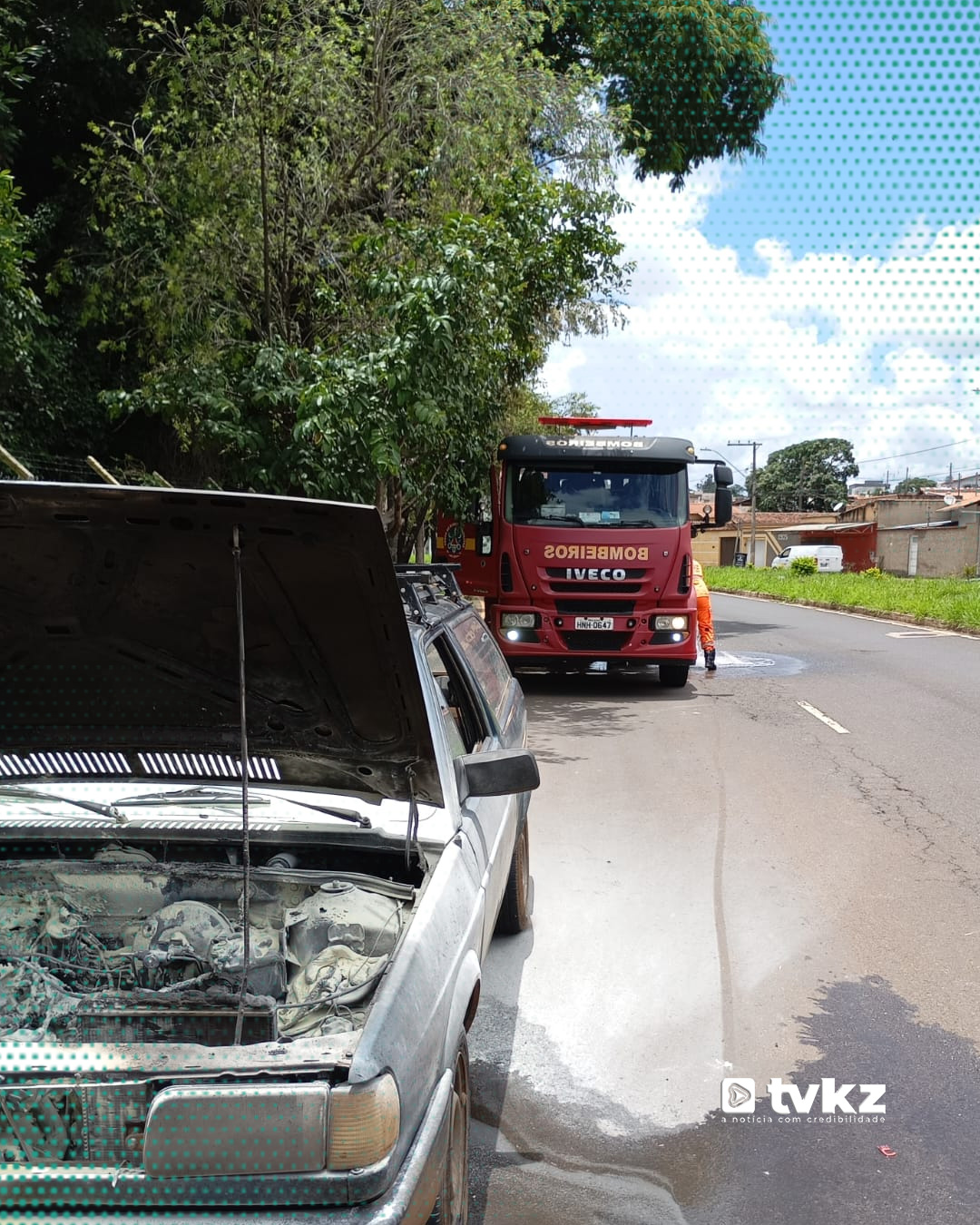 Um carro, VW Parati, pegou fogo na manhã dessa segunda-feira (6), na Avenida Dâmaso Drummond, no Bairro Vila Rica, em frente à escadaria do Parque do Cristo, em Araxá/MG.