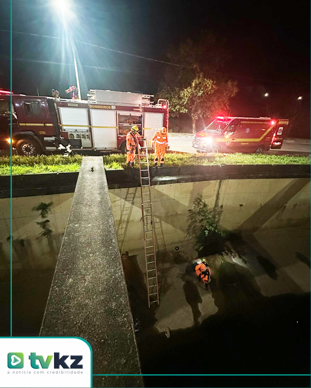 Um homem de 33 anos foi resgatado pelo Corpo de Bombeiros Militar (CBMMG) após cair no canal do Córrego Grande, na noite de sábado (28), por volta das 22h06, na Avenida Rosalvo Santos, no bairro Bom Jesus, em Araxá/MG.