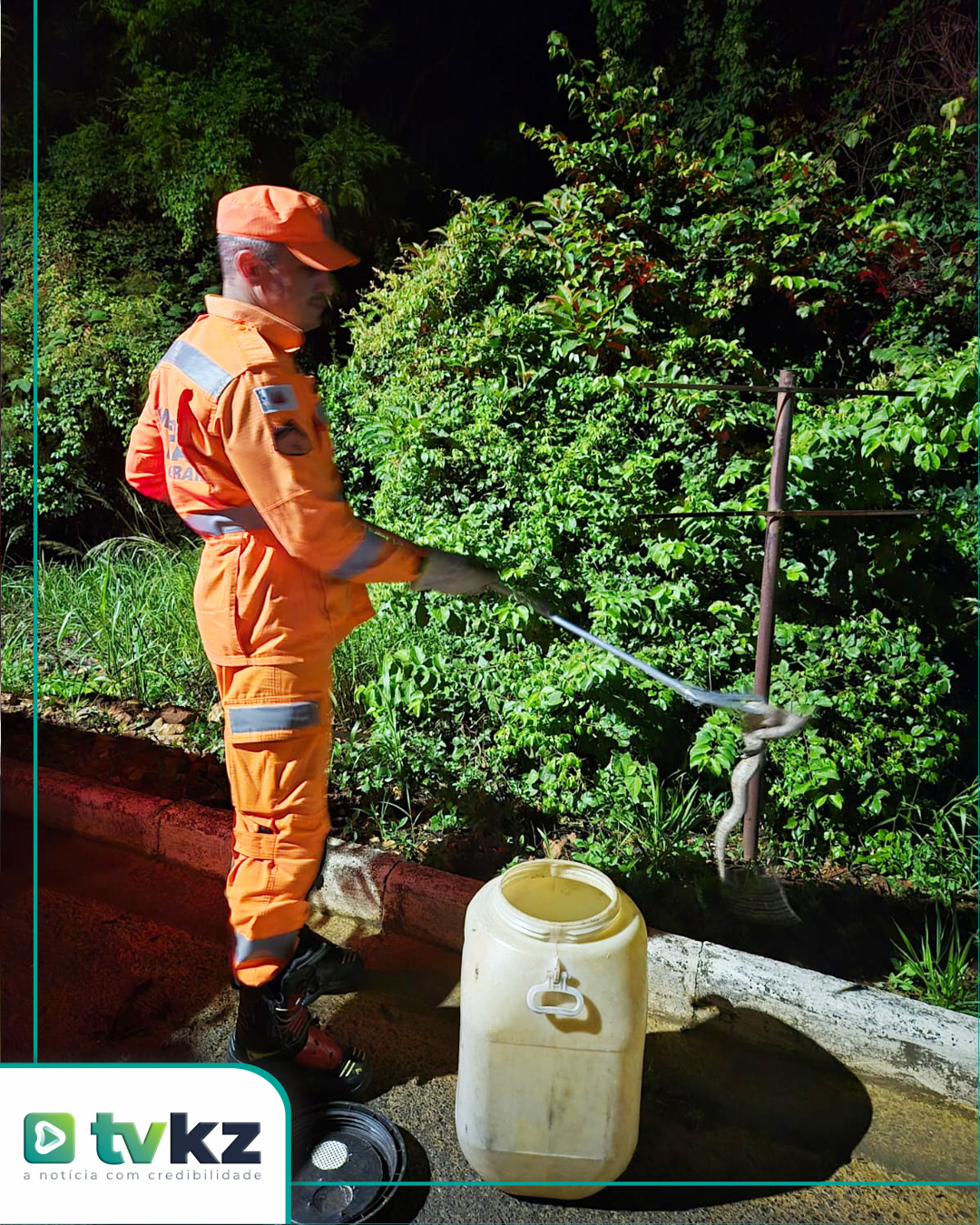 Após a captura, a serpente foi transportada e devolvida ao seu habitat natural.