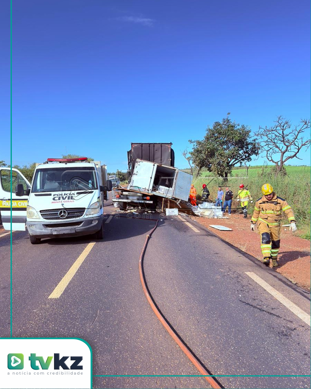 Segundo informações do Corpo de Bombeiros Militar (CBMMG), o acidente envolveu uma carreta carregada com sucata e uma caminhonete Ford F-350. Ainda conforme os bombeiros, a carreta seguia pela rodovia quando a parte cargueira teria começado a pegar fogo, possivelmente em razão de superaquecimento no sistema de freios.