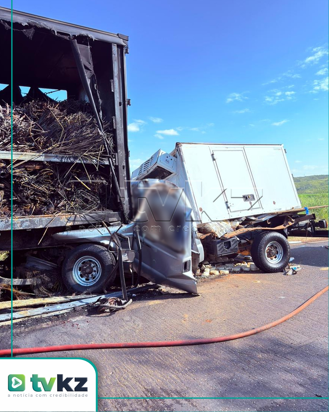 Na sequência, a caminhonete, que trafegava no mesmo sentido, teria batido na traseira do caminhão que estava em chamas. Com o impacto, os dois ocupantes da caminhonete, pai e filho, de 59 e 26 anos, ficaram presos às ferragens e morreram no local.