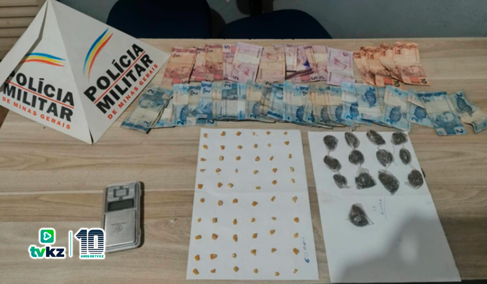 No interior da casa, os militares abordaram dois suspeitos, o adolescente e outro homem, e encontraram 13 buchas de maconha, 60 pedras de crack, uma balança de precisão e dinheiro, que foram apreendidos.