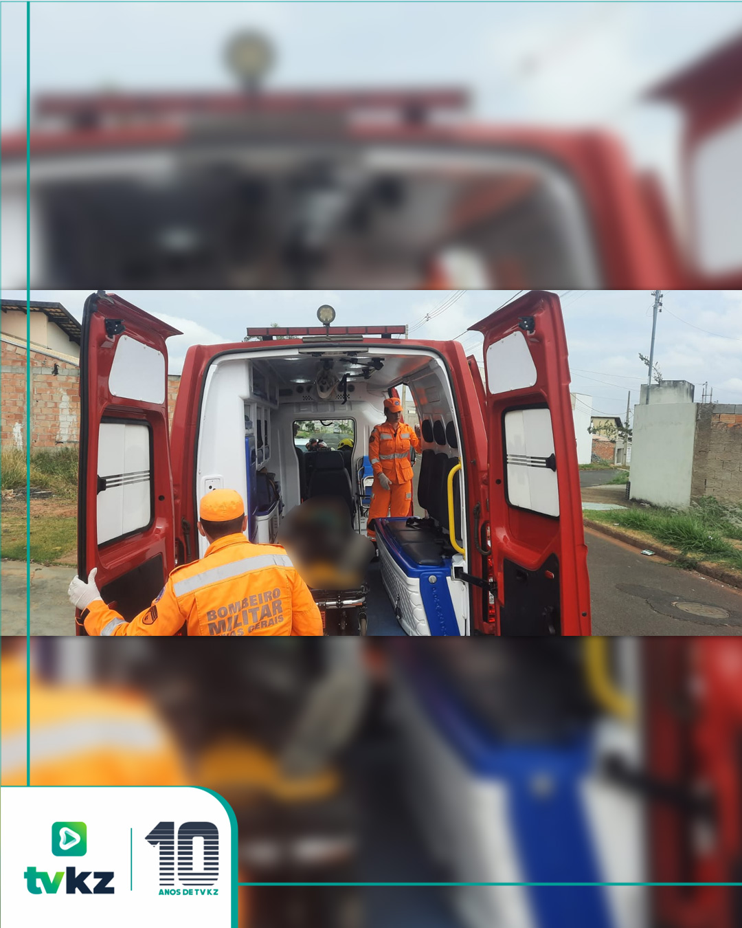 Ao chegar no local, os bombeiros encontraram a vítima deitada no chão da garagem, consciente e orientada.