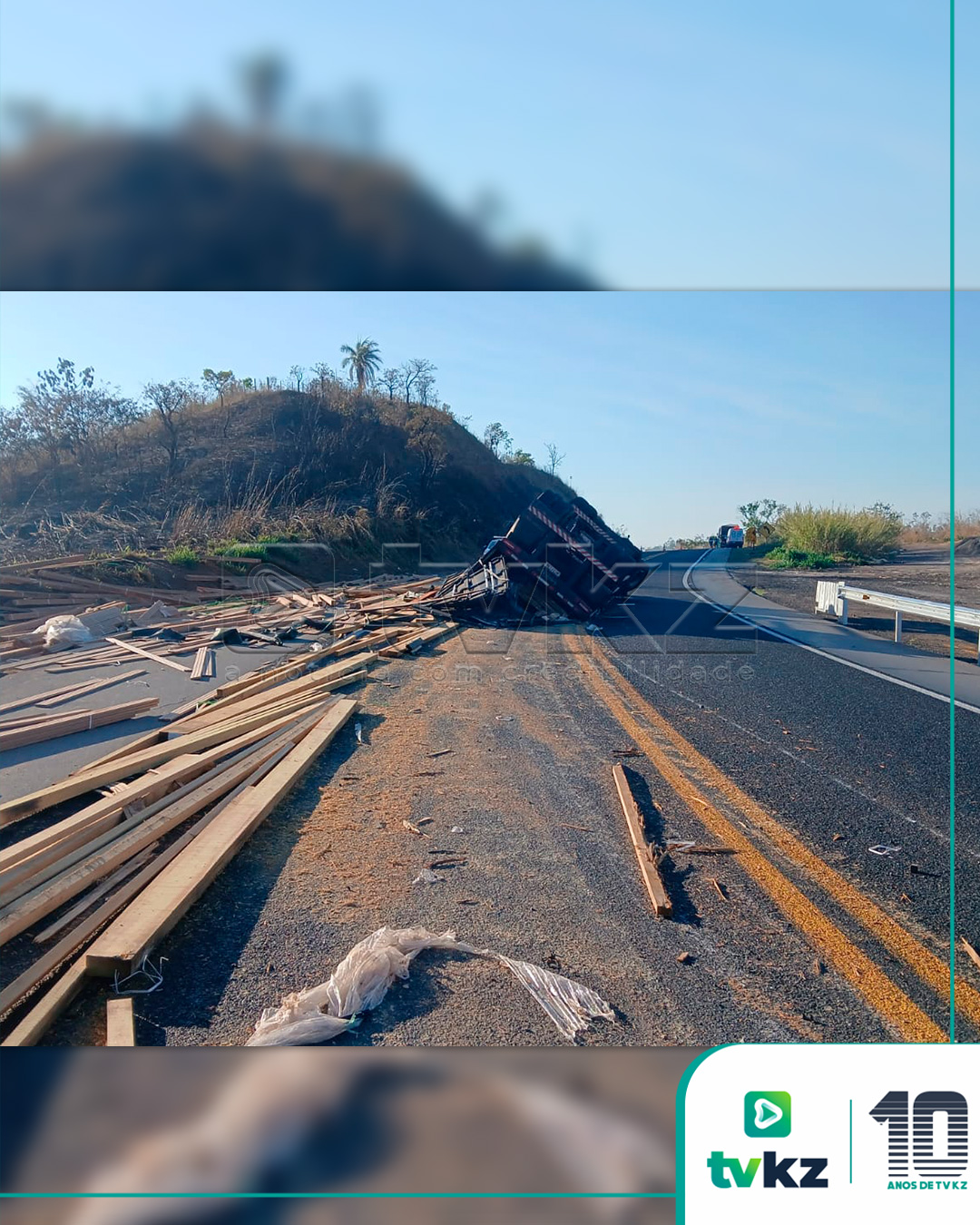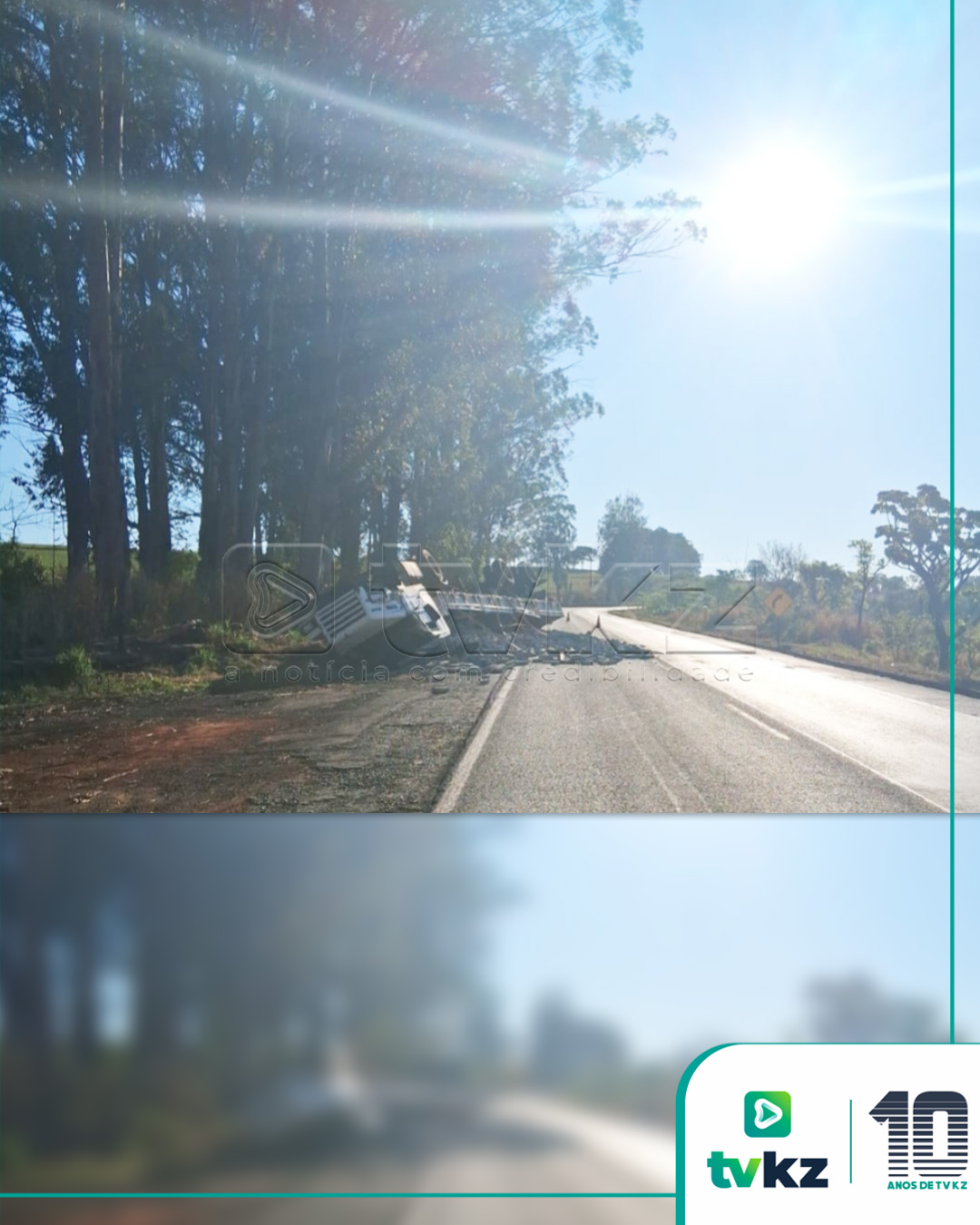 O terceiro registro foi o tombamento do último semirreboque de uma carreta carregada com madeira, que se soltou do veículo e tombou sobre a pista. A ocorrência também resultou em bloqueio parcial da via. Por volta das 9h54, o trecho estava interditado totalmente para a retirada do veículo e da carga. Por volta das 11h15 o local já estava totalmente liberado.