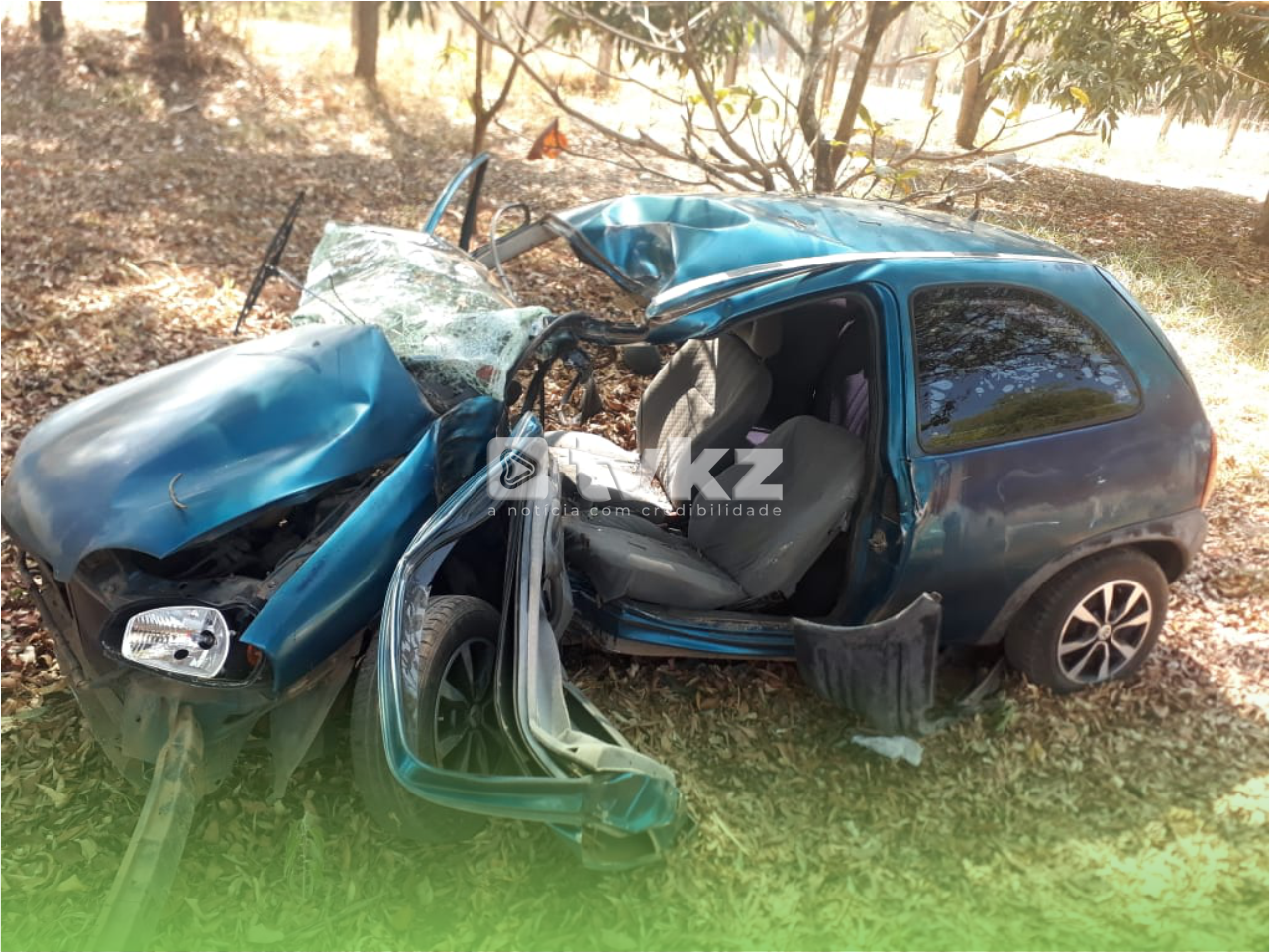Segundo informações do Corpo de Bombeiros, um carro de passeio, ocupado por duas pessoas, saiu da pista e bateu em uma árvore. Quando os militares chegaram ao local, a passageira estava andando fora do veículo e o motorista preso às ferragens.