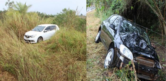 Dois condutores perderam o controle da direção de seus veículos e saíram da pista, na estrada que liga Bambuí a Medeiros, próximo a entrada do IFMG, em Bambuí.