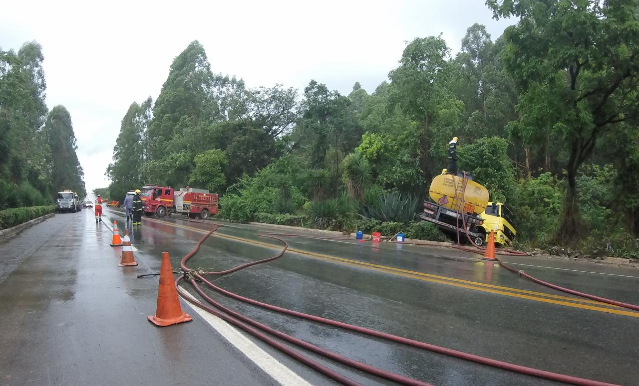 A rodovia foi totalmente interditada devido ao perigo de explosão. O Corpo de Bombeiros realizou os trabalhos para evitar um possível incêndio da carreta.