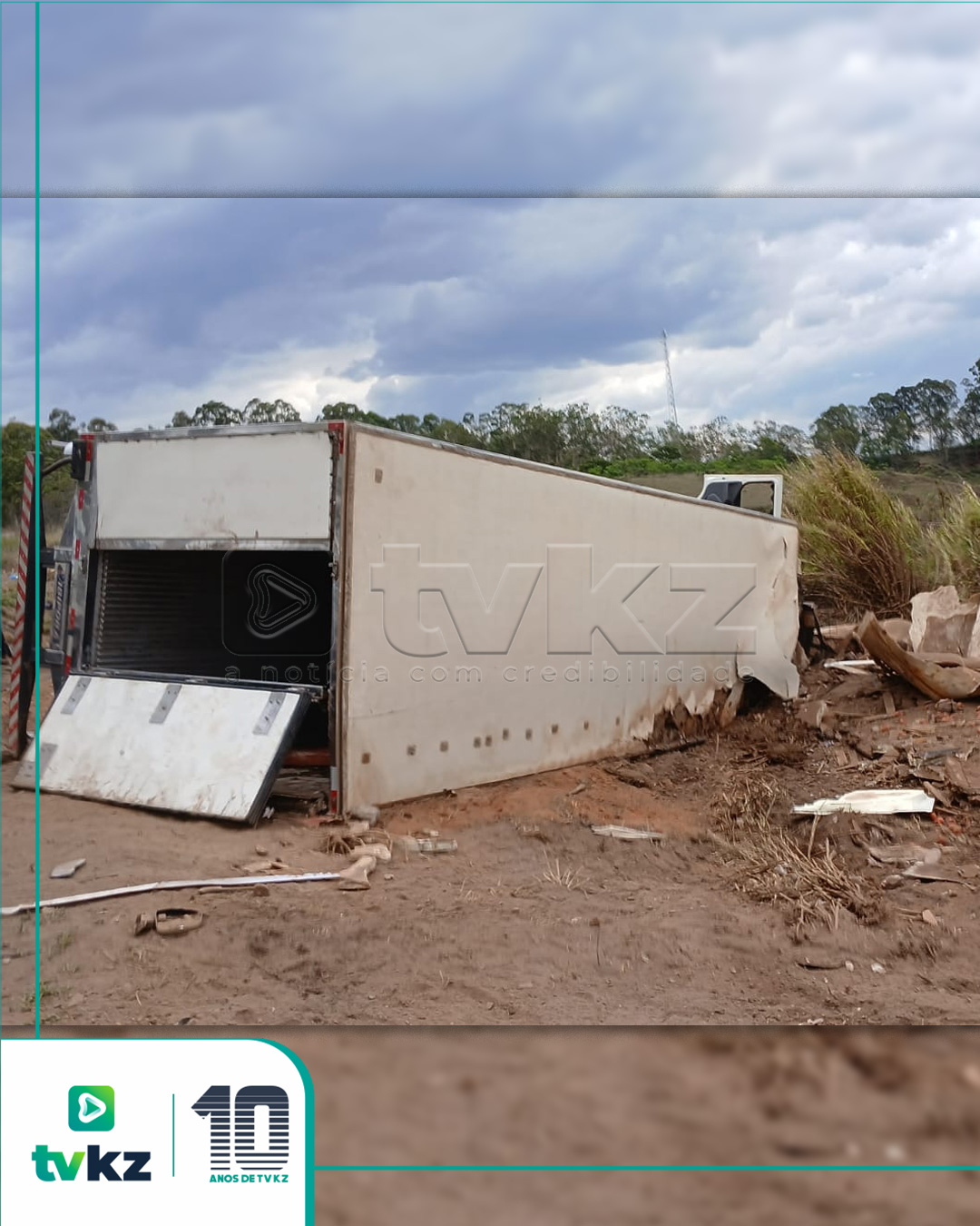 Conforme apurado pela reportagem da TV KZ, um caminhão saiu da pista e tombou. O veículo transportava carne de porco, e o motorista sofreu ferimentos aparentemente leves.