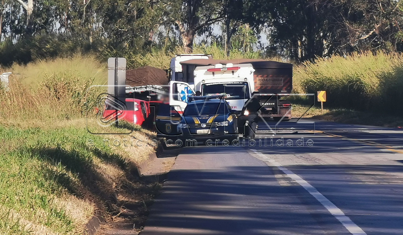 ASSISTA: Dois ficam feridos após batida entre carro e caminhão na BR-262, em Campos Altos/MG