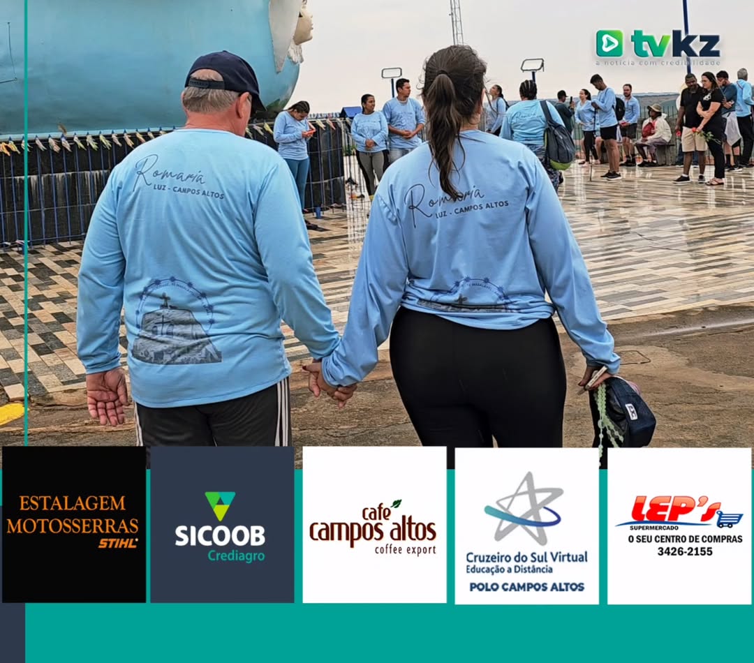 Um grupo de 65 romeiros da cidade de Luz/MG chegou ao Santuário de Nossa Senhora Aparecida, em Campos Altos/MG, na tarde deste sábado (11). A caminhada, feita a pé entre Luz e Campos Altos, é uma tradição mantida há vários anos, reunindo fiéis que percorrem o trajeto em demonstração de fé e devoção à Padroeira do Brasil.