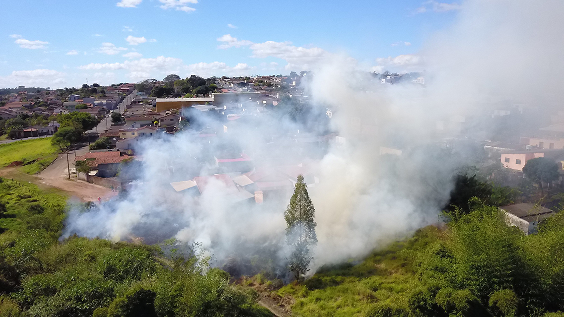 Segundo um homem, que mora ao lado do terreno, havia risco de as chamas invadirem uma casa. A fumaça era tanta que não era possível permanecer dentro de algumas residências da proximidade.