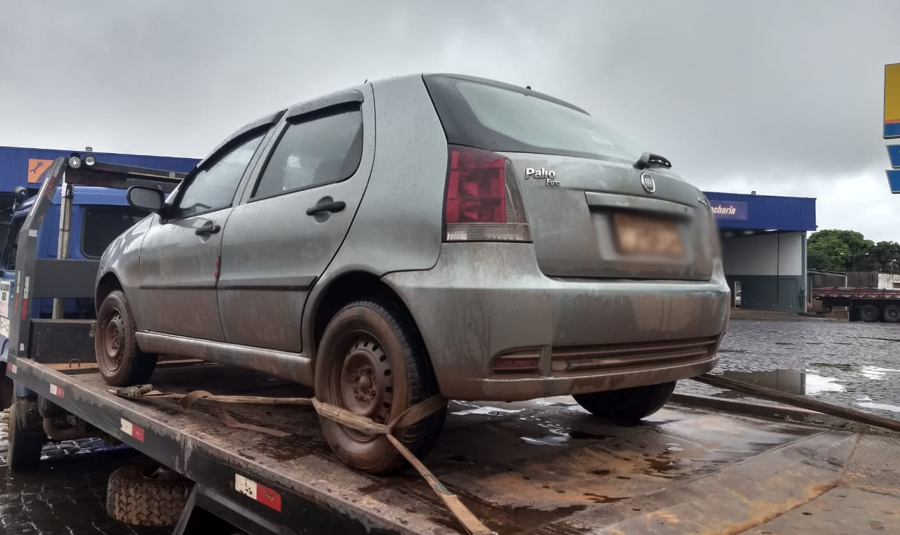 A Polícia Militar (PM) localizou um veículo estacionado às margens da BR-262, próximo ao Posto Patão na manhã desta segunda-feira (19). Segundo a PM, o veículo foi roubado na madrugada na estrada vicinal que liga São Jerônimo dos Poções à BR-354. Os bandidos abordaram a vítima e tomaram de assalto o Fiat Pálio, placas de Campos Altos, que seguia pela zona rural.