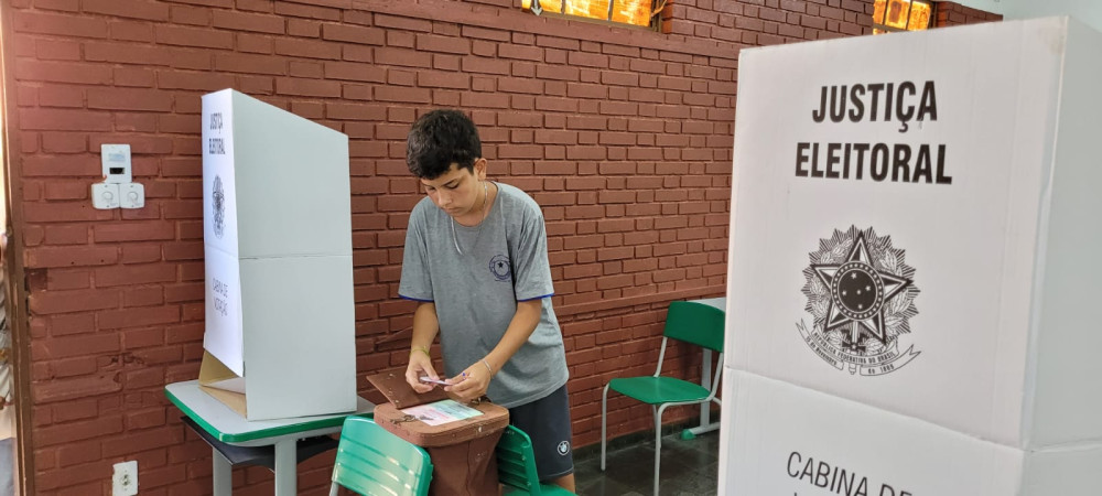 Aluno participando do projeto "Exercendo a democracia" da Escola Estadual Doutor José Cordeiro de Campos