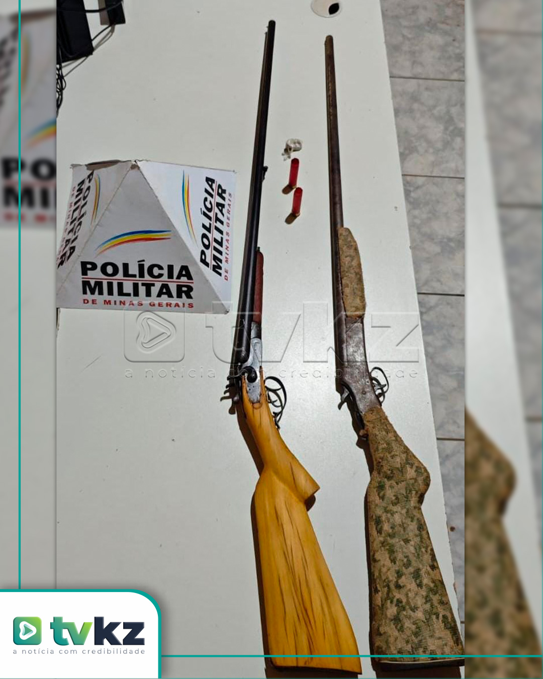 Durante a ocorrência, os militares visualizaram no celular da suspeita imagens que levantaram a possibilidade da existência de armas de fogo na casa dela. Em diligência autorizada pelo pai dela na residência, no Bairro Osvaldo Alves de Araujo, foram localizadas duas espingardas e cartuchos, sem registro legal.