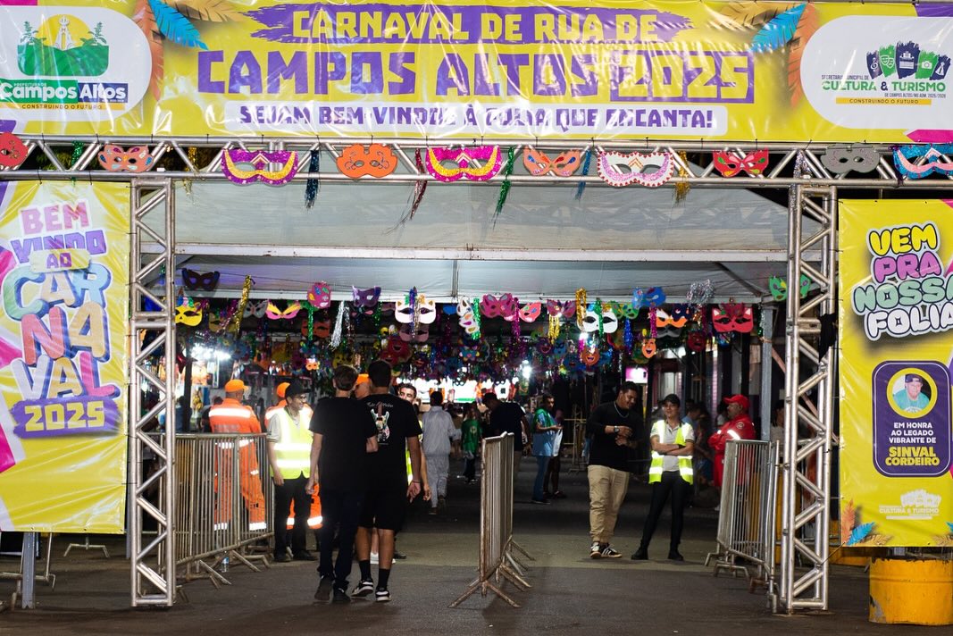 Para garantir a segurança dos foliões, o Carnaval de Rua de Campos Altos 2025 contou com monitoramento por câmeras 24h, presença da Polícia Militar (PM), seguranças particulares em toda a extensão do evento e brigadistas preparados para emergências.