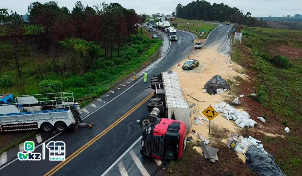 De acordo com informações da Polícia Rodoviária Federal (PRF), o caso envolveu uma carreta pertencente a uma empresa com sede em Belo Horizonte/MG. O conjunto transportava farelo de soja e seguia de Uberlândia/MG para Carmo do Cajuru/MG.