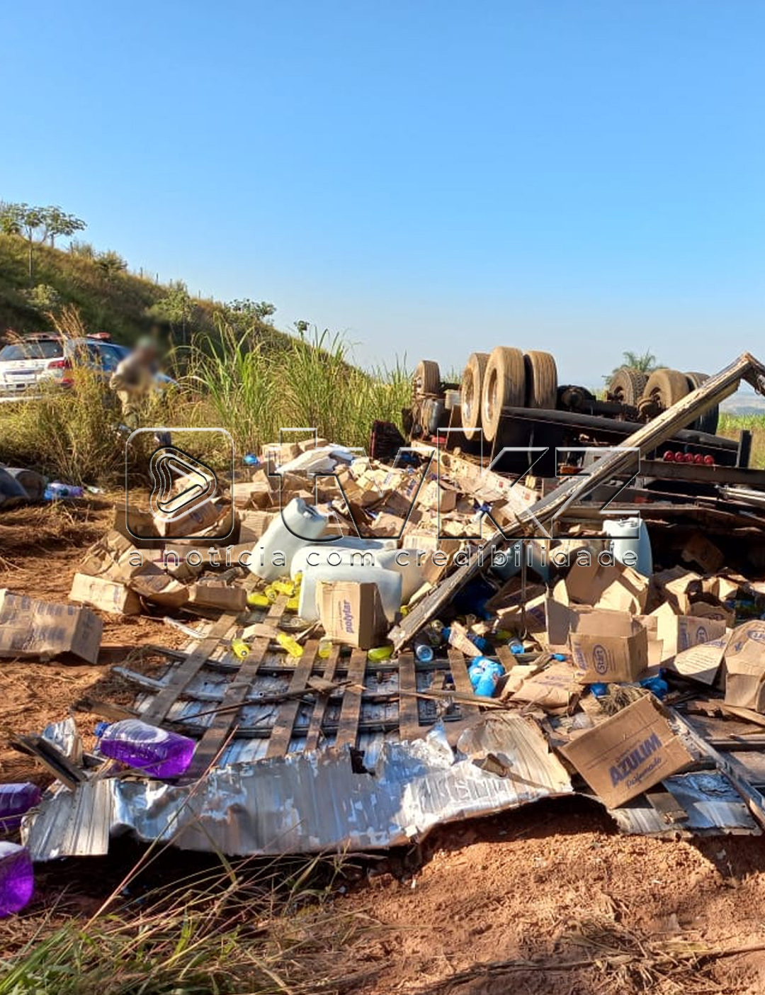 Um caminhão se envolveu em um acidente na madrugada desta terça-feira (6), por volta das 4h20, no km 371 da BR-354, em Córrego Danta/MG. O veículo transportava produtos de limpeza e teve a carga saqueada por diversas pessoas.
