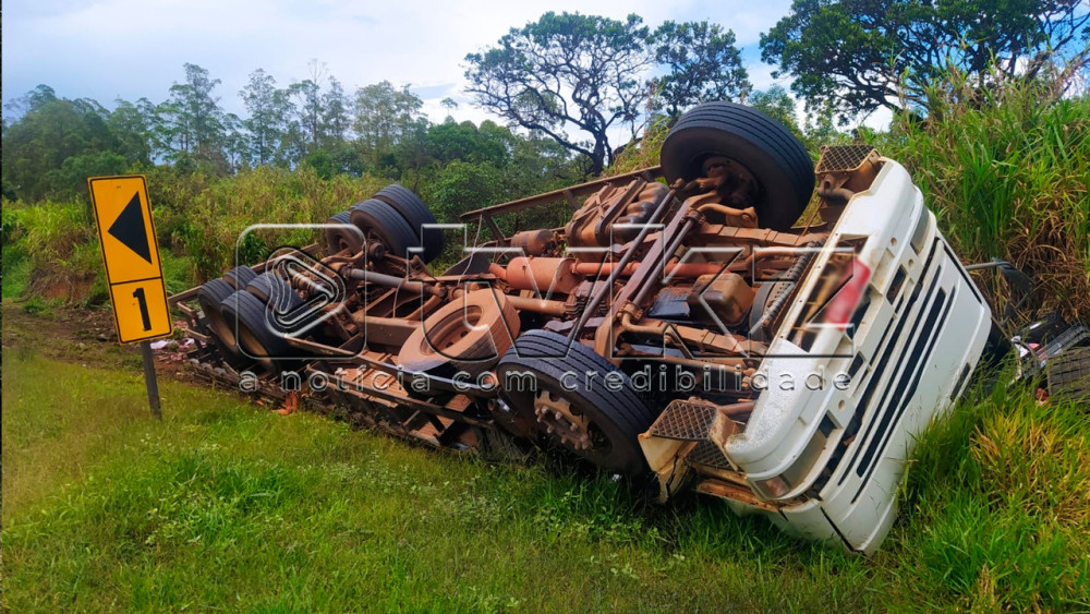 Segundo informações apuradas da TV KZ, o motorista perdeu o controle direcional, o veículo capotou e parou fora da pista. O caminhão transportava batata doce. Houve derramamento de carga.