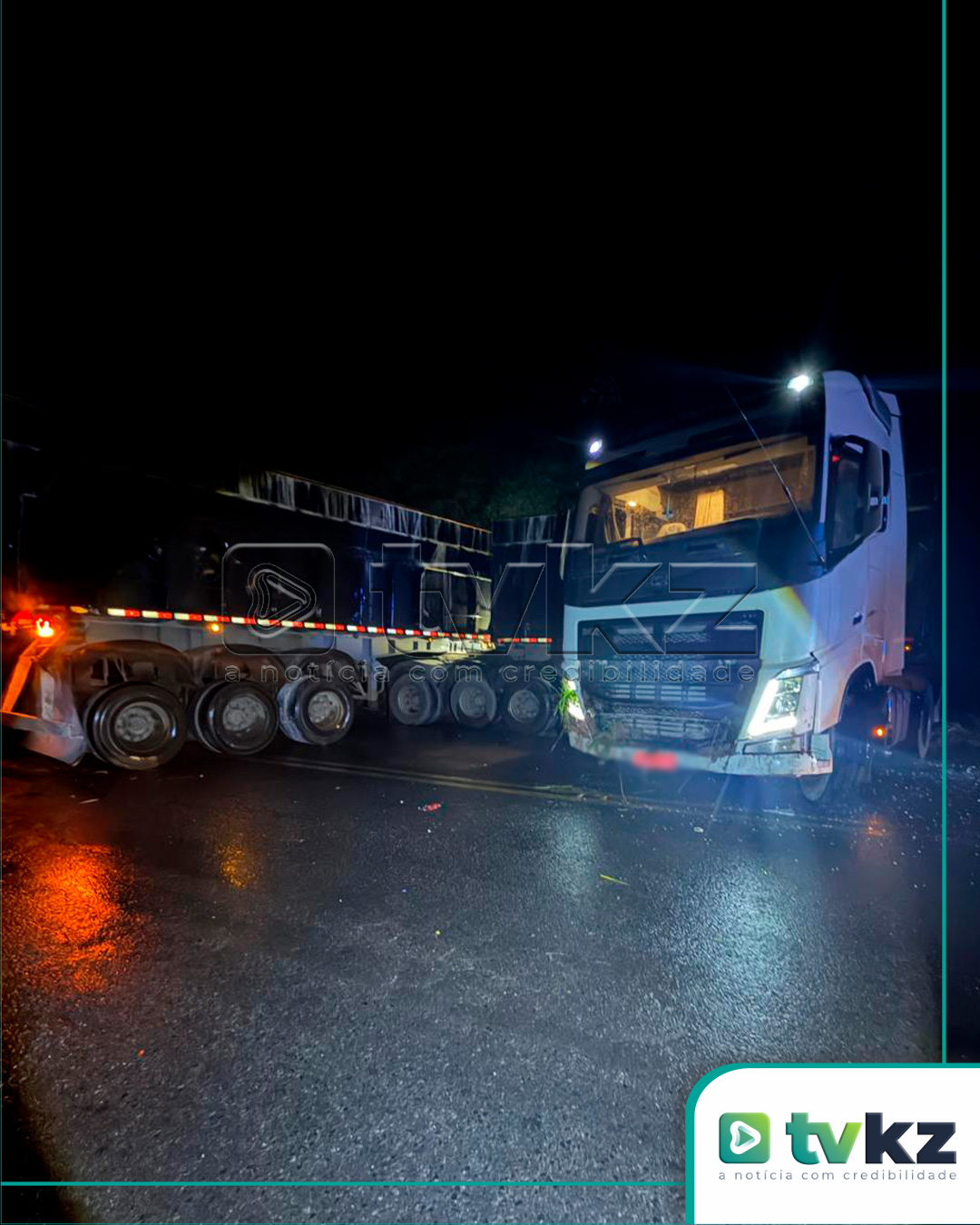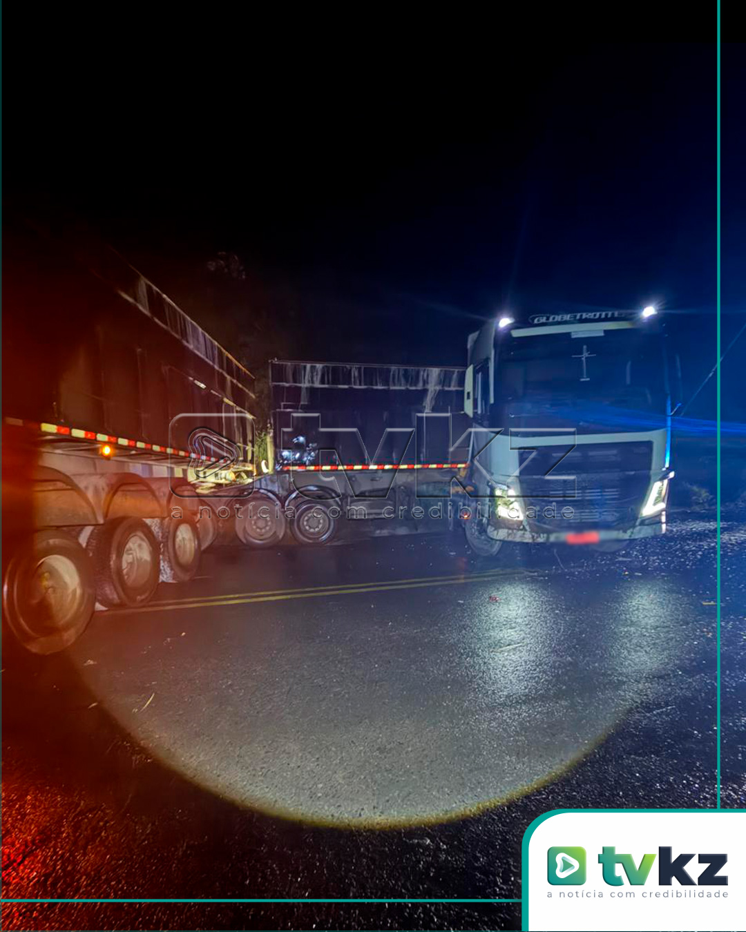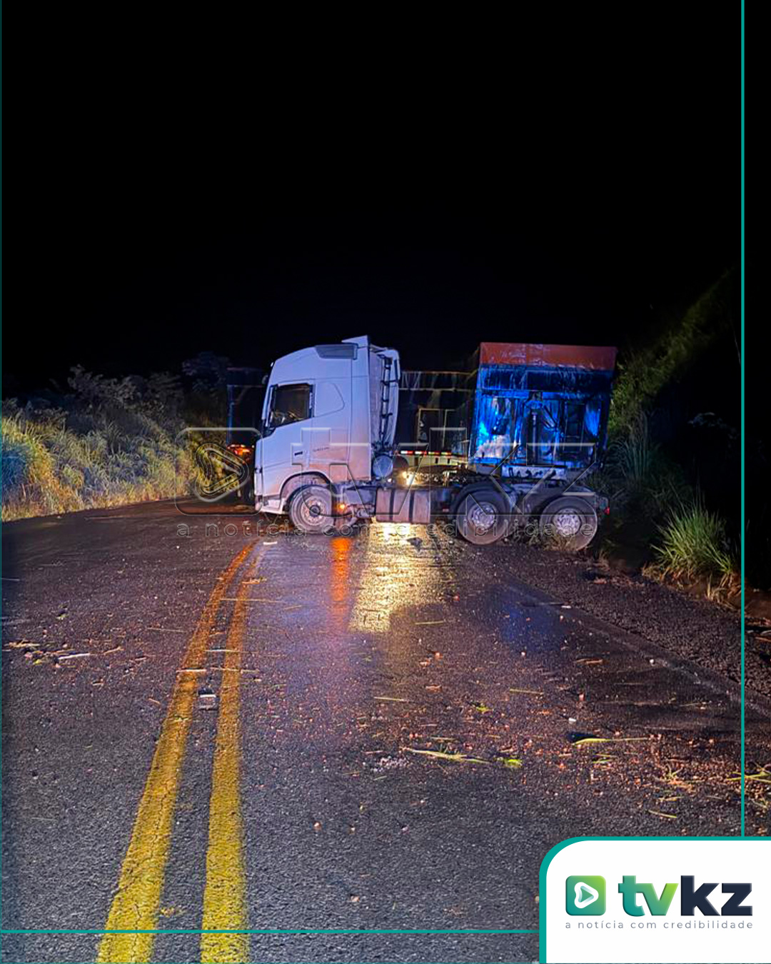 Uma carreta bitrem ficou atravessada em formato de “L” deixando a BR-354 parcialmente interditada em um acidente ocorrido na madrugada desta segunda-feira (23), por volta de 0h50, no km 386, no município de Córrego Danta/MG. O trecho já se encontrava liberado.