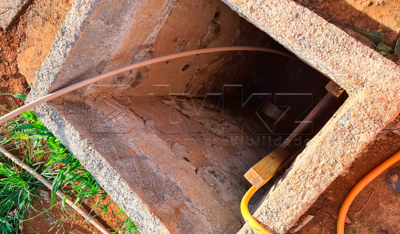 Fossa de onde o homem foi retirado pelos Bombeiros.